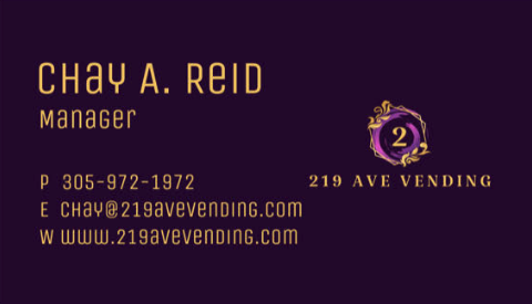 A proven family run vending service provider in the Miami-Dade area, we can take care of all your vending needs. 219 Ave Vending provides the highest quality of vending machines and vending services that your company deserves, our machines are always well stocked, clean, and fully operational. 219 Ave Vending provides traditional and healthy snacks, cold beverages, frozen food, and other products to a diverse clientele. Customer service is our number one priority; we strive to develop a customized service to our clients.